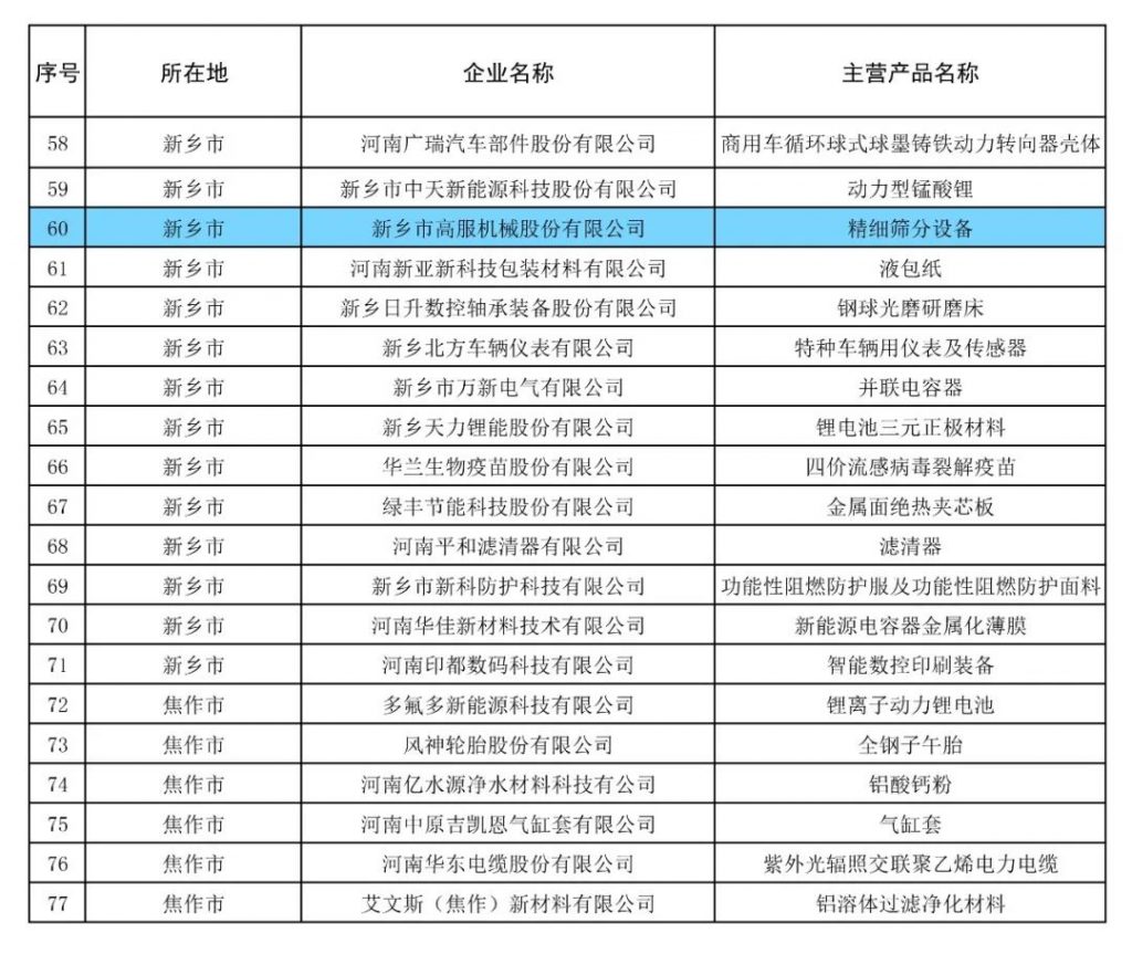 近日,河南省工业和信息化厅组织开展了2024年河南省制造业单项冠军企业遴选工作,目前已完成相关评审。j9国际官网-九游会官方网站登录筛机的“精细筛分设备”上榜了“制造业单项冠军产品”目录。这一荣誉的获得,不仅彰显了高服筛机在技术创新、产品质量及市场竞争力等方面的卓越成就,也进一步巩固了其在j9国际官网-九游会官方网站登录分设备制造领域的领军地位。