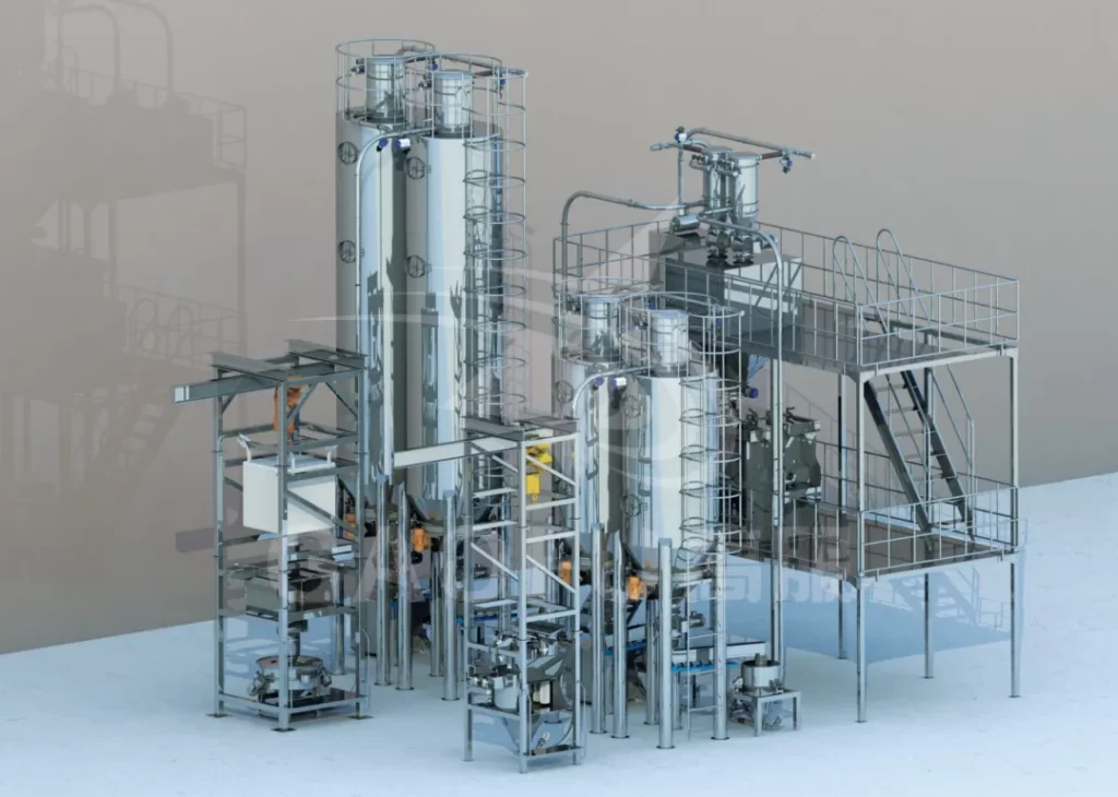 【提高生产效率】吨包无尘投料站通过自动化控制系统实现从卸料、称重到投料的全程自动化操作,极大地提高了生产效率。