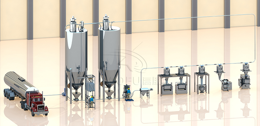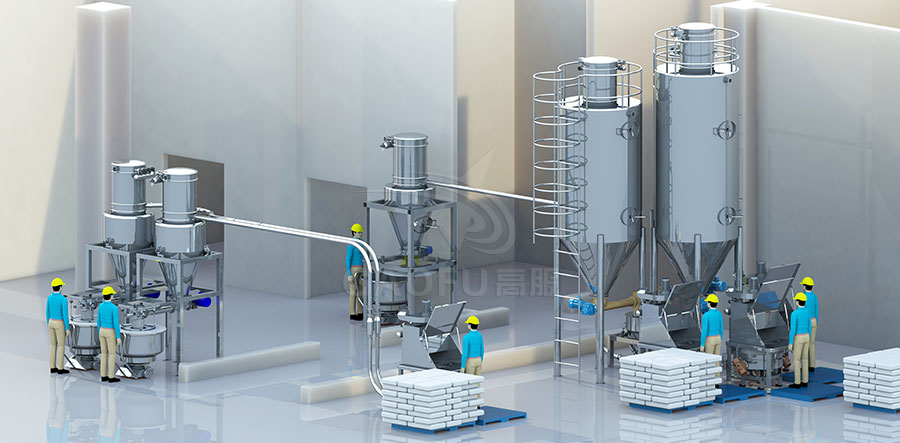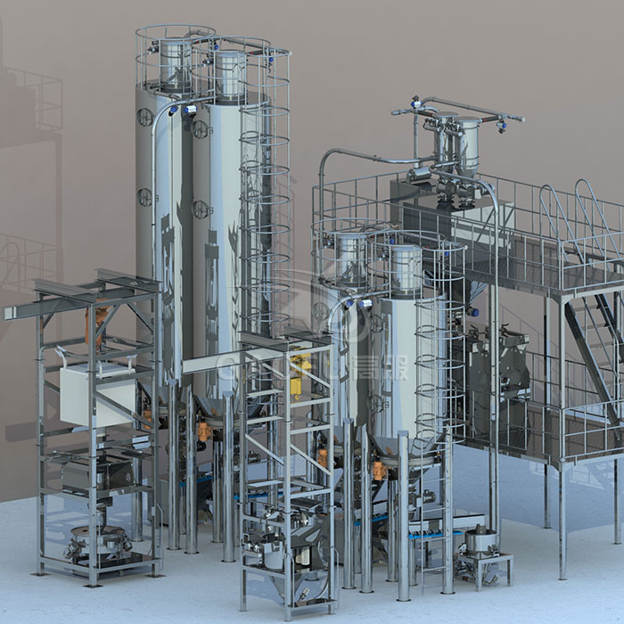 气力输送系统是一种高效、经济、环保的材料输送技术,广泛应用于各种工业领域,根据客户的物料特性、场地条件、工艺要求,提供各种合理的气力输送方案,在输送物料的过程中,可以同时实现 计量、配料、筛分、混合、除铁、除杂的工艺,满足您的生产所需。